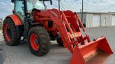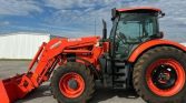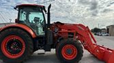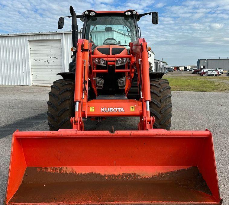 This 2018 Kubota M7-171 tractor has 2,002 hours on the meter and is powered by a 6.1-liter Kubota diesel engine with four cylinders. It features a 24 forward and 24 reverse powershift transmission with a left-hand reverser and differential lock, providing smooth operation across a range of field conditions. The operator's station is equipped with air conditioning, heat, a display system, and auto steer capability for increased efficiency and comfort.